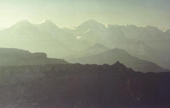 Eiger, Monch and Jungfrau mountains - 13026 feet, 13449 feet, and 13642 feet - on a perfect morning for aerial photos.