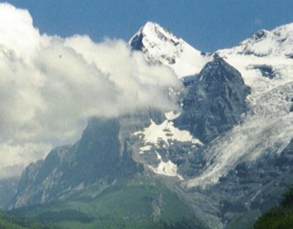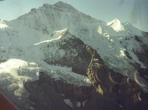 The main face of the 13642 feet Jungfrau with its frontal twin peaks.