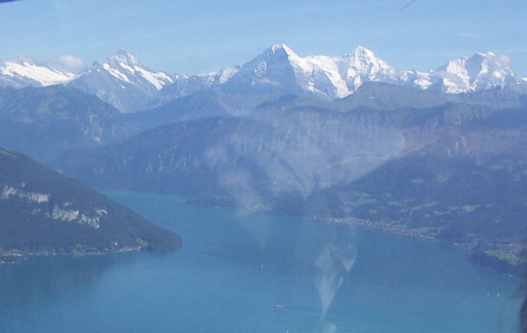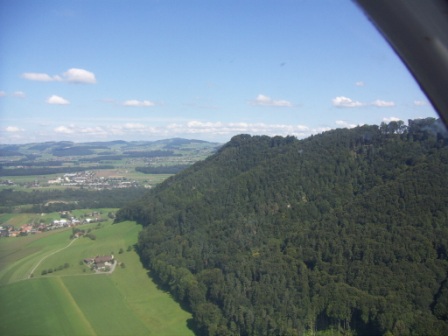 Thun with its thousand years old castle - where Adrian and Regine held their wedding party over 36 years back - cruising along beside the Belpberg a few moments before turning left for finals at Belp Airport. Along the horizon are the Jura mountains.
