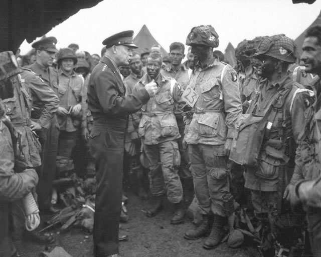 Once committed, the invasion on its way, General Eisenhower forfeited all control over his airborne and seaborne assault forces... and could only wait for news. D Day relied entirely upon the training, discipline, brains and courage of thousands of individual young men. Years later General Eisenhower recalled with affection how the paratroopers brushed aside his concerns. ' Quit worrying, General, we'll take care of this thing for you.' |