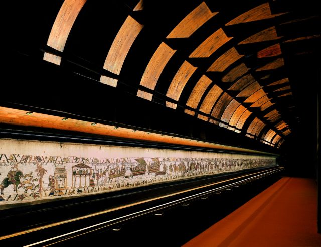 The Bayeux Tapestry depicting William the Conqueror's invasion and victory in 1066. The 70 metre long tapestry is now nearly 1000 years old.